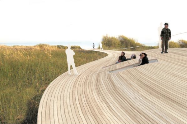 Architecture for Humanity sponsored Safe Trestles design competition. The contest asked designers to propose a more secure and less impacting means to access the coveted coast of the San Onofre State beach in California, considered one of the best places to surf and which attracts more than 100,000 people per annum.